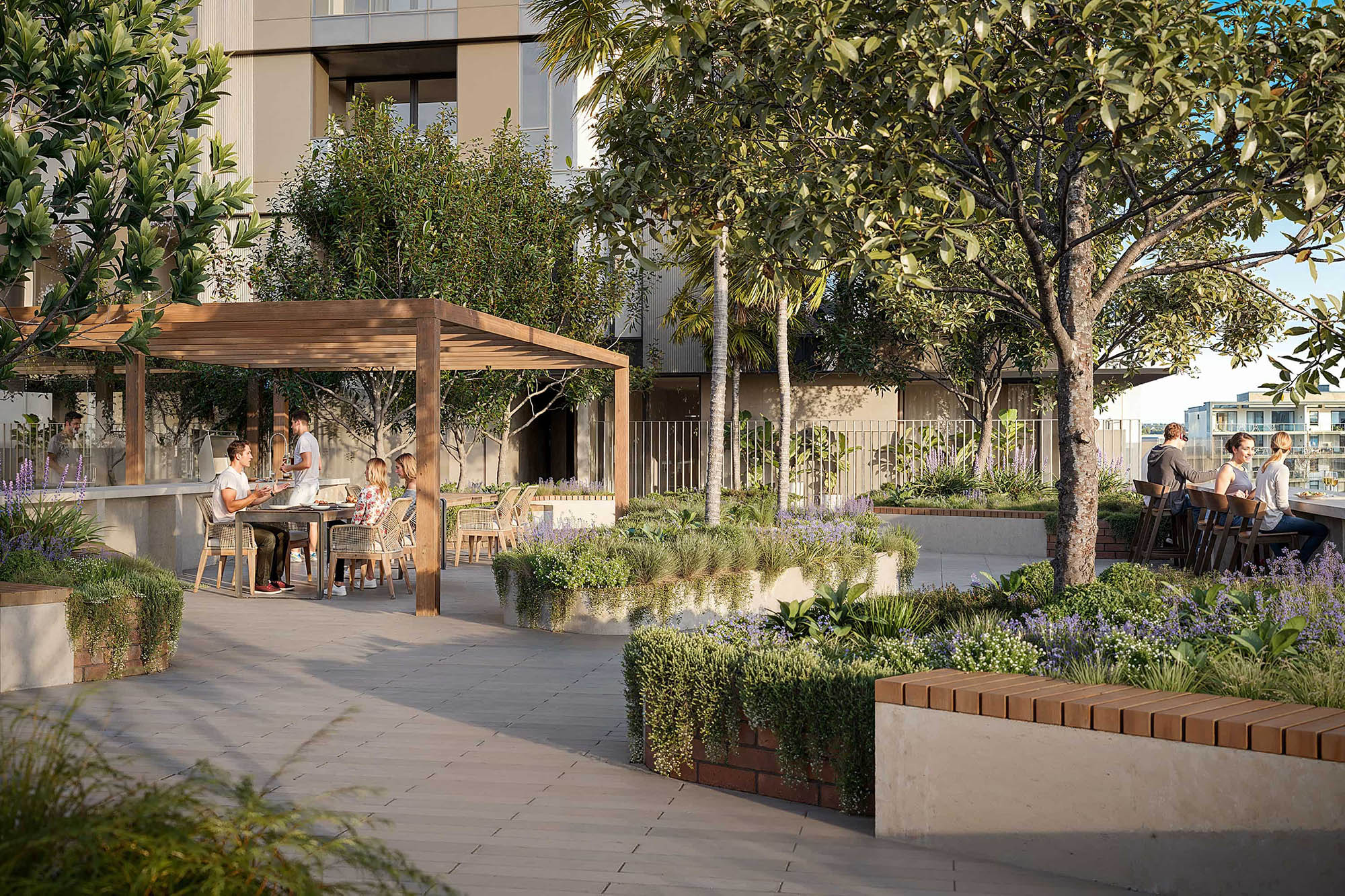 The entrance to Marquet & Mary will be elegant and grand, with surrounding landscaping designed to enhance Rhodes’ tree-lined streetscape. Enjoy convenient access to Rhodes Central through a vibrant pedestrian retail laneway, featuring bustling cafes, new eateries, and boutique shops for all to enjoy.